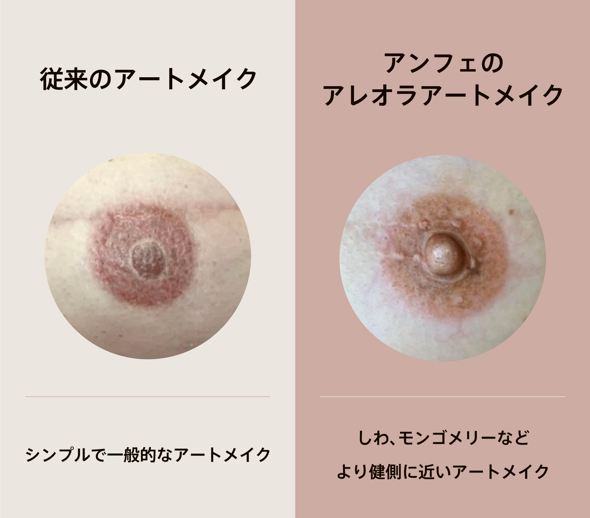 アンフェアレオラアカデミーは、先天的に乳輪・乳頭がない方や、乳がんにより乳房再建手術をされた方が、医療アートメイクにて乳輪・乳頭を色素再建する「アレオラアートメイク」の専門知識や専門技術を、現役で活躍し多くの症例を持つ代表築地育美から直接学べる日本初のアレオラアートメイク専門スクールです。