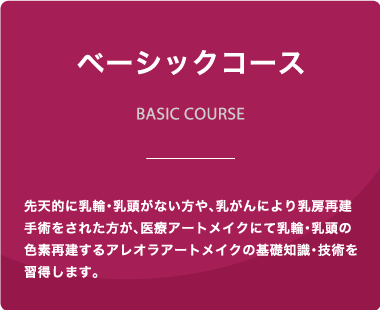 基礎のみ学びたいから向けの「BASIC COURSE」、基礎からunfe独自のよりリアルなアレオラアートメイクを学びたい方向けの「T-style COURSE」、解剖から理解しアートメイクの基礎から極みまで学ぶ「MASTER COURSE」の3つのコースがあります。